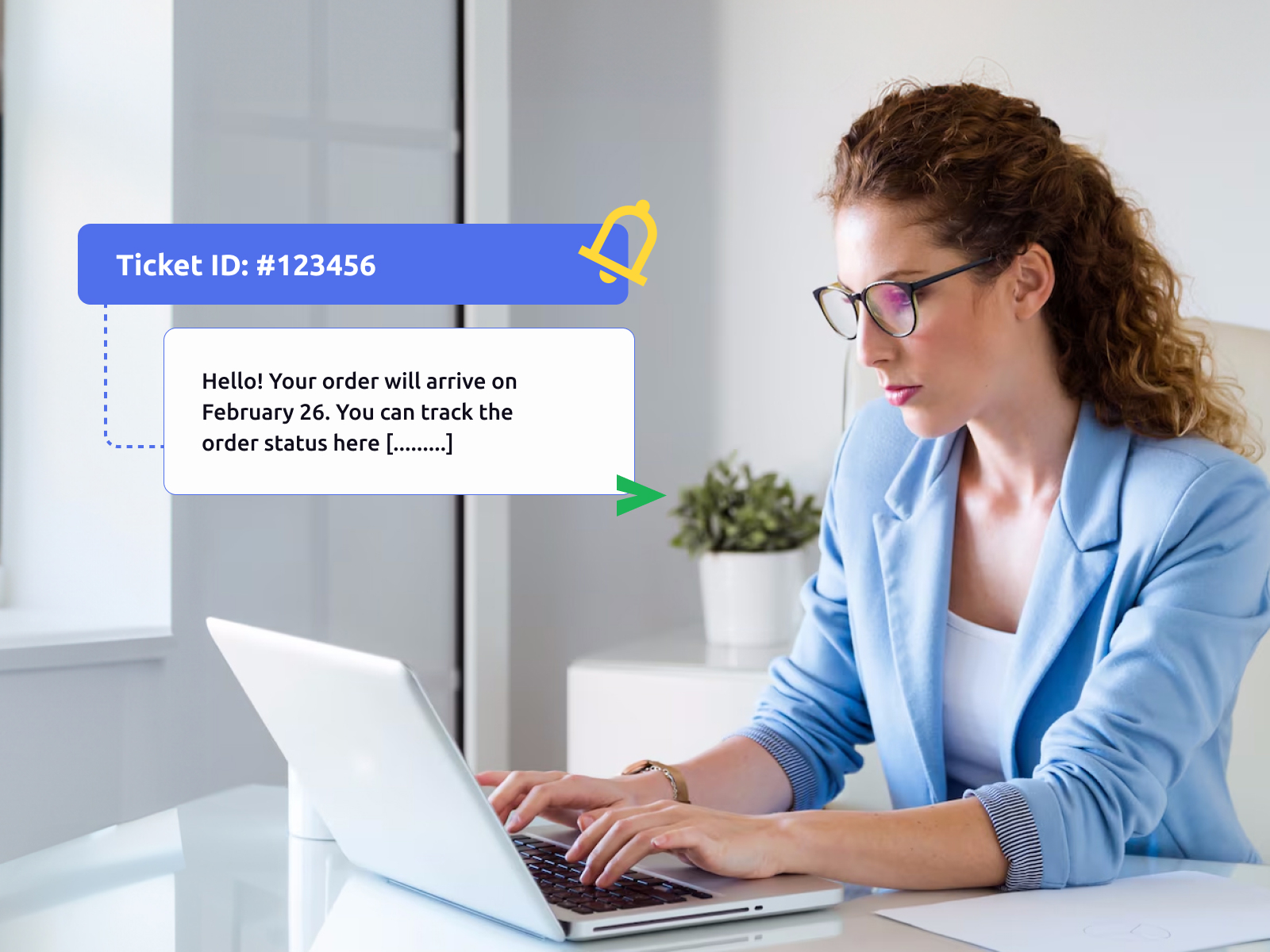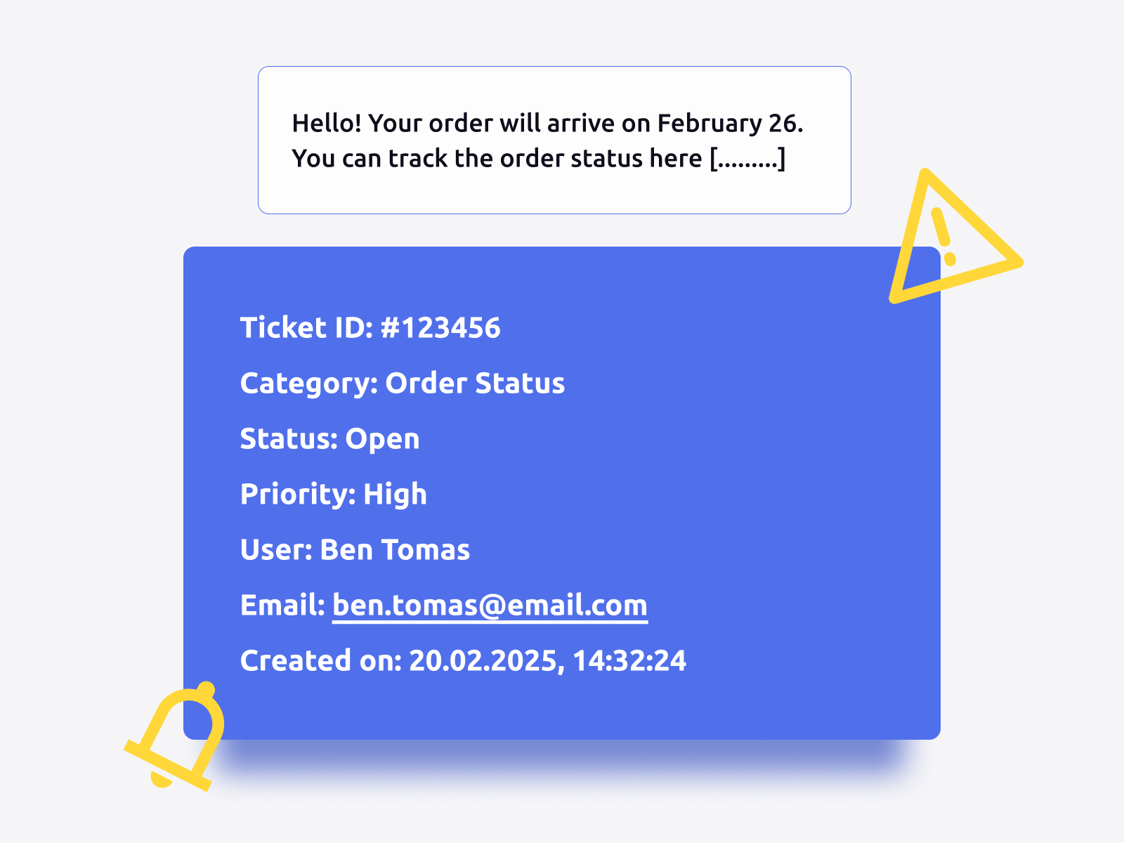 ➡️ Die KI erkennt die Wörter "Bestellung" und "Ankunft," ordnet sie der Kategorie "Lieferung" zu und wenn es Informationen im System gibt, antwortet sie sofort: "Ihre Bestellung wird am 15. Februar ankommen. Verfolgen Sie den Status hier."