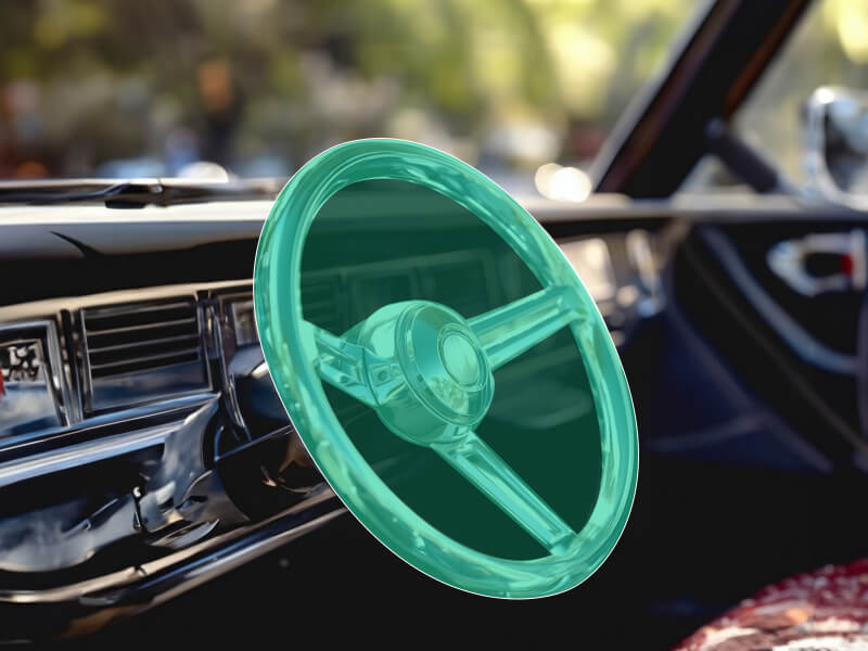 Zum Beispiel: Der Kunde mochte ein Designer-Lenkrad, richtet sein Telefon auf das Armaturenbrett, und die KI wendet in Echtzeit das ausgewählte Modell auf das Lenkrad an.