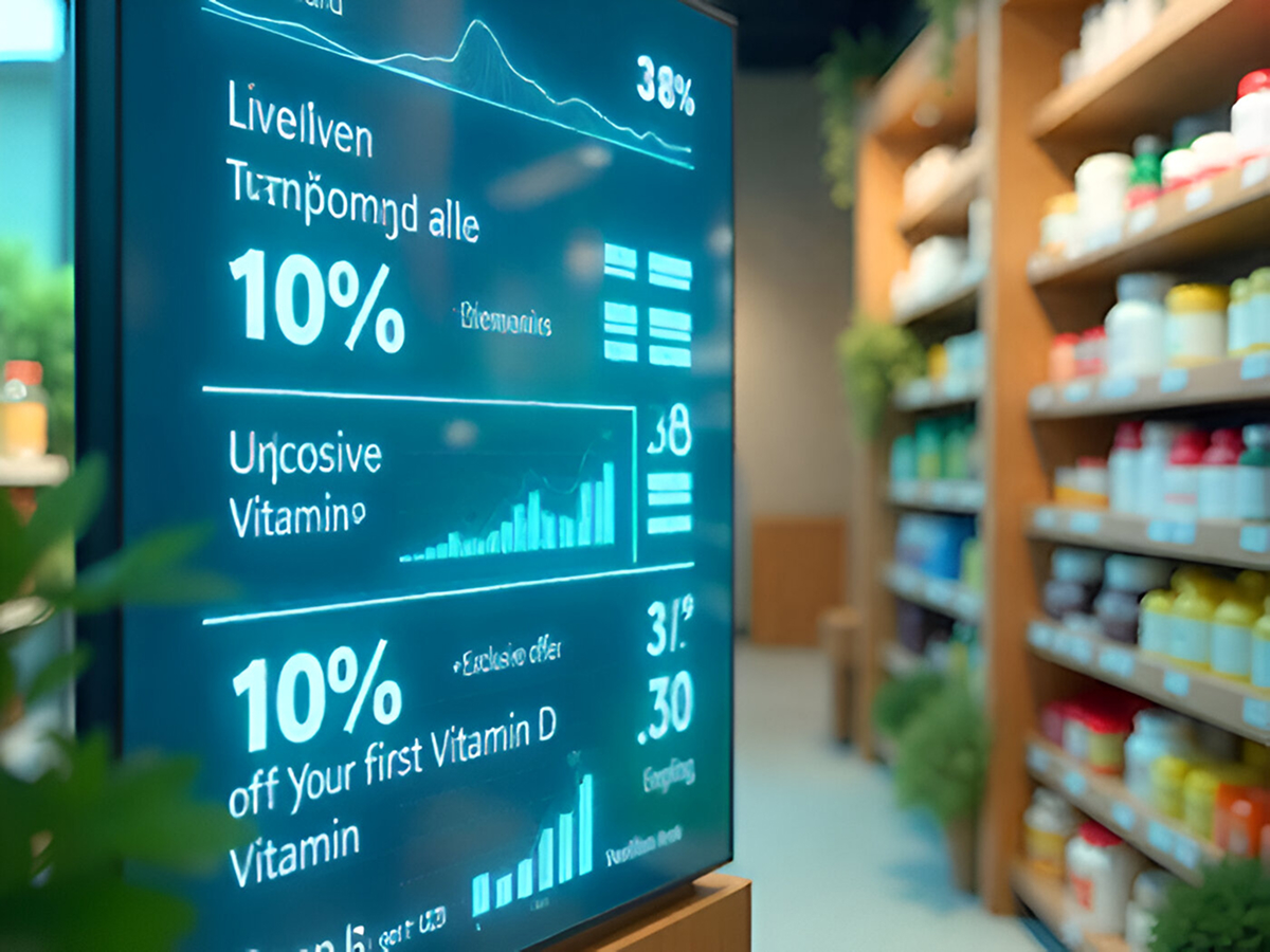 Eine fortschrittliche KI sagt Kundenbedürfnisse voraus und erstellt personalisierte Nahrungsergänzungsangebote mittels intelligenter Zielgruppenansprache und erneuter Ansprache in Werbekampagnen.