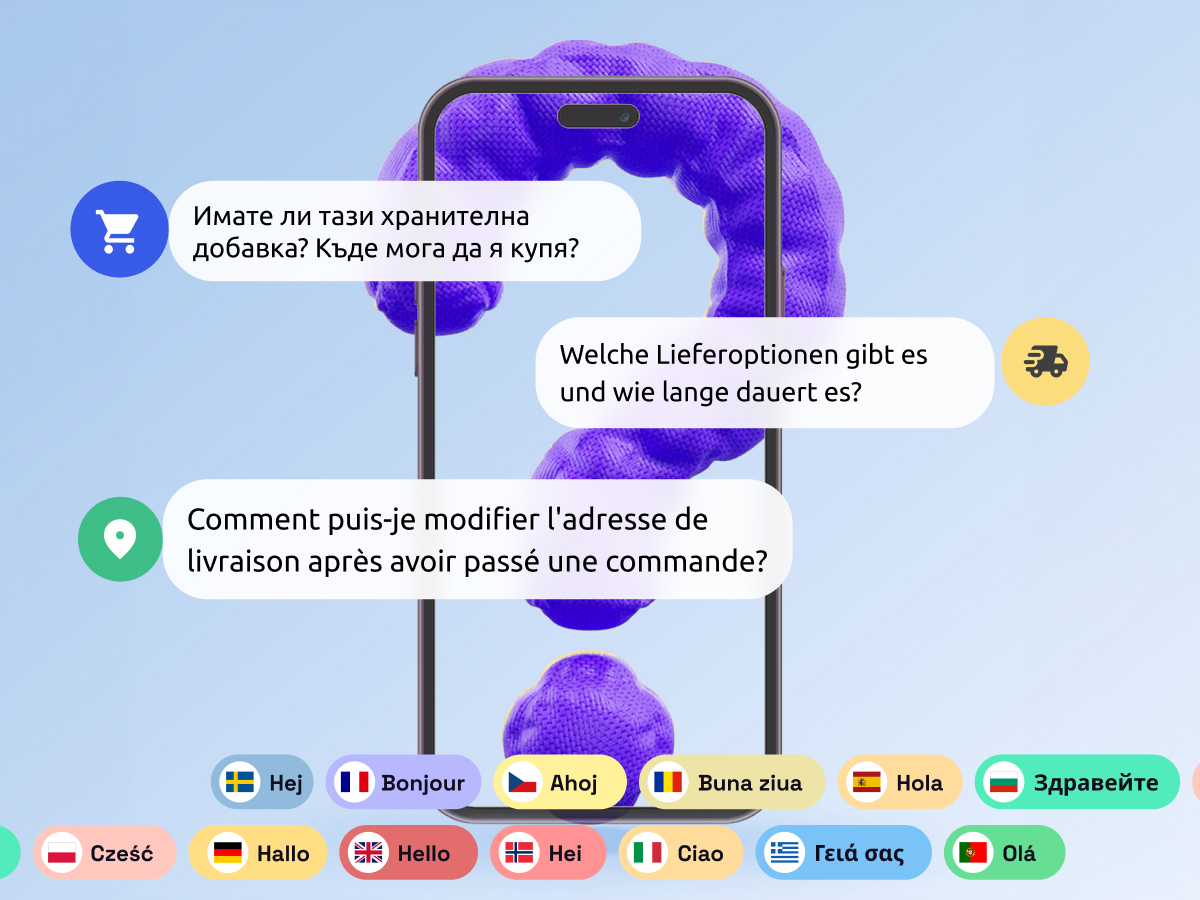 Bietet rund um die Uhr Kundensupport, indem es sofort auf Anfragen zu Produkten, Verfügbarkeit und Bestellungen in über 95 Sprachen antwortet, 24/7, 365 Tage im Jahr.